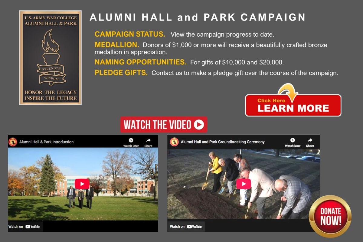 Home Alumni Hall and Park Campaign Learn about the benefits of a Foundation Membership! Become A Member Make a gift to the Foundation in honor of or in memory of someone special. Make a Tribute Gift View the videos to see what makes USAWC a special place. What Does USAWC mean to me? Shop the Online Gift Shop anytime! The Foundation Gift Shop in Root Hall is open Monday through Friday from 8 a.m. to 4 p.m. Visit the Gift Shop! Foundation Members can access the searchable Alumni Directory. Alumni Directory Login SUPPORT OUR MISSIONĀ DONATE NOW